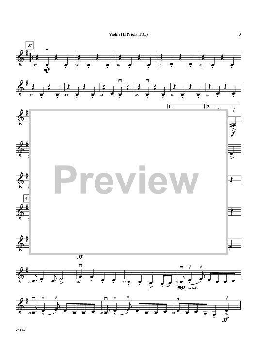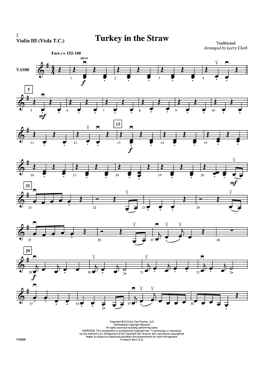 Digital Sheet Music for Turkey in the Straw - Violin 3 by Larry Clark, American Folk Song scored for Orchestra; id:411130