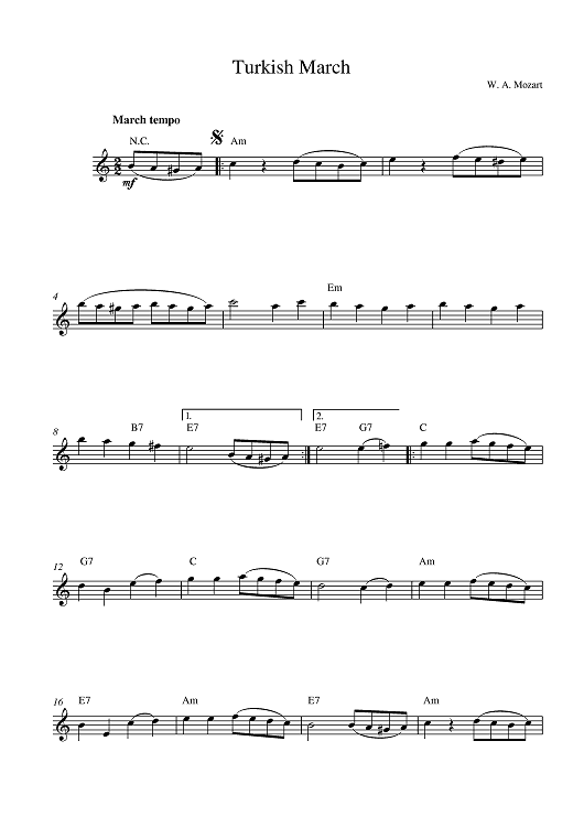 Digital Sheet Music for Turkish March by Wolfgang Amadeus Mozart scored for Lead Sheet; id:380742