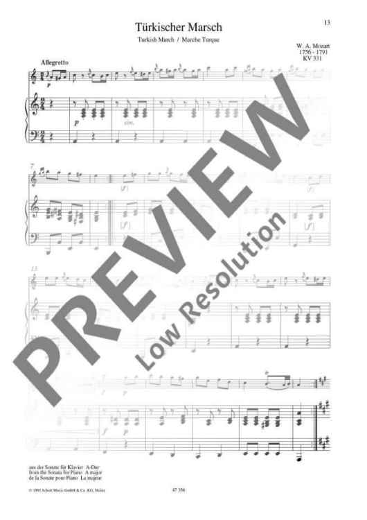 Digital Sheet Music for Turkish March by Wolfgang Amadeus Mozart scored for Flute And Piano; id:486506