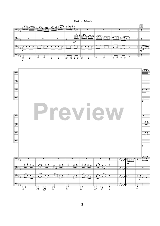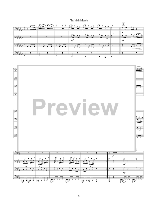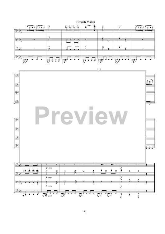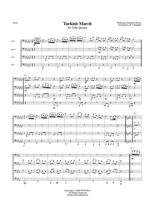 Digital Sheet Music for Turkish March - Score by Wolfgang Amadeus Mozart, Bryan Doughty scored for Tuba Quartet; id:314108