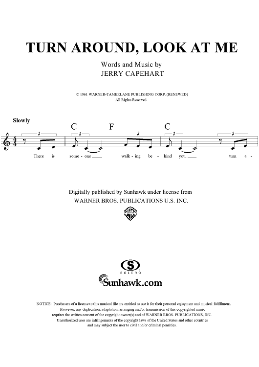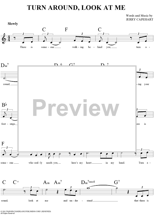Digital Sheet Music for Turn Around, Look at Me by Bee Gees, Jerry Capehart, The Lettermen, The Vogues scored for Lead Sheet; id:113075