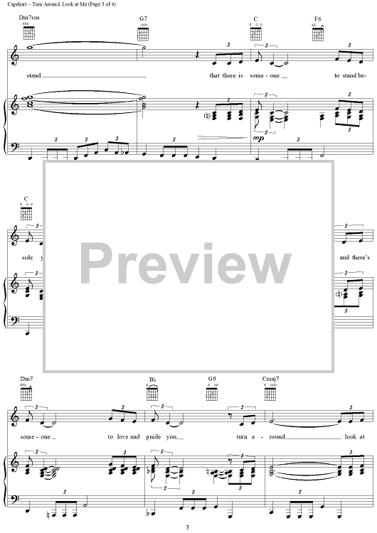 Digital Sheet Music for Turn Around, Look At Me by Bee Gees, Jerry Capehart, The Lettermen, The Vogues scored for Piano/Vocal/Chords; id:124144