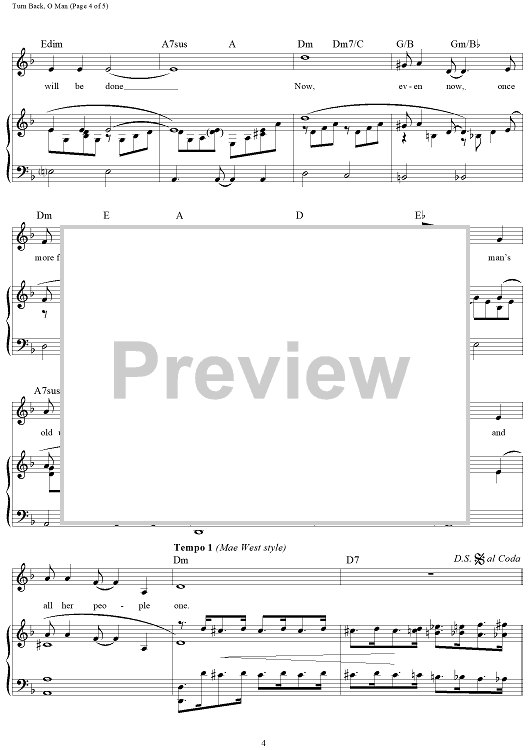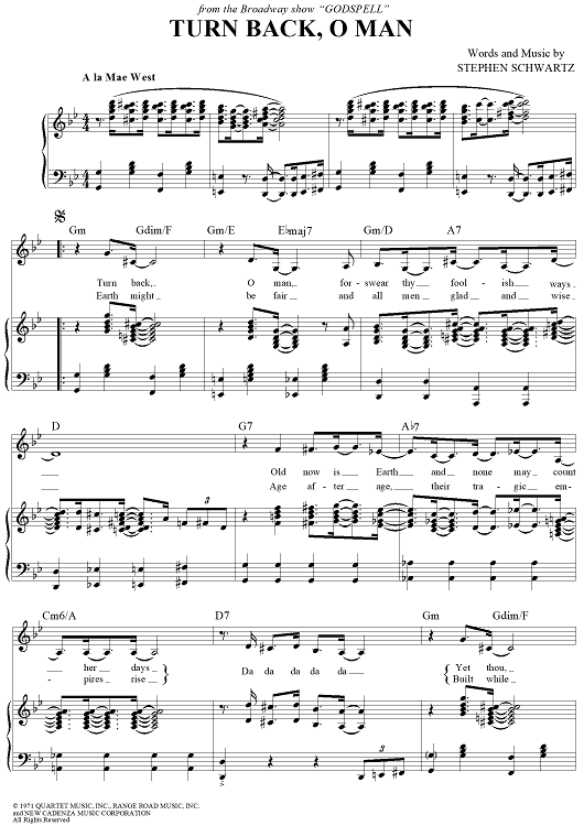 Digital Sheet Music for Turn Back, O Man by Stephen Schwartz scored for Piano/Vocal/Chords; id:113787