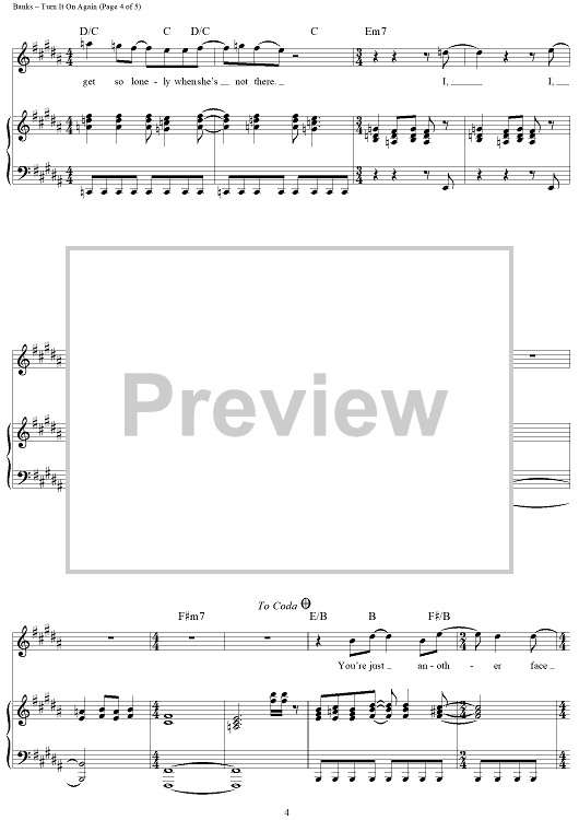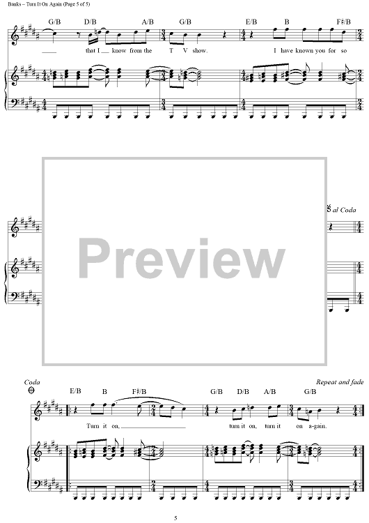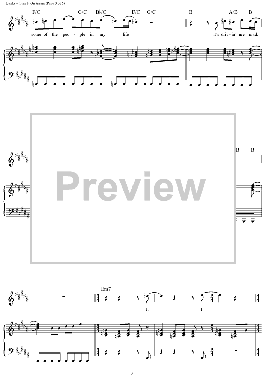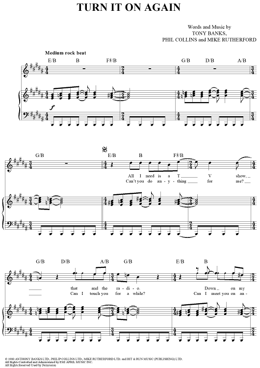 Digital Sheet Music for Turn It on Again by Genesis, Mike Rutherford, Tony Banks, Phil Collins scored for Piano/Vocal/Chords; id:411450