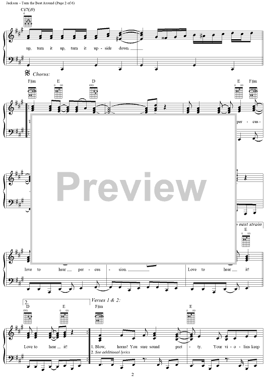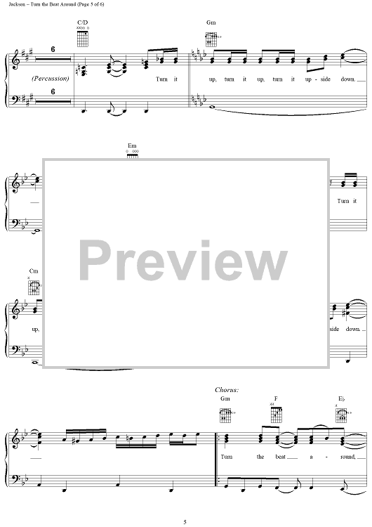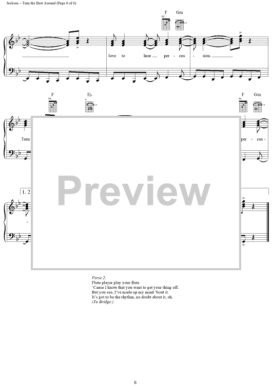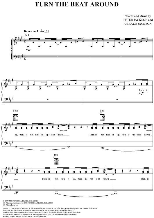Digital Sheet Music for Turn the Beat Around by Gloria Estefan, Peter Jackson, Gerald Jackson scored for Piano/Vocal/Chords; id:283429