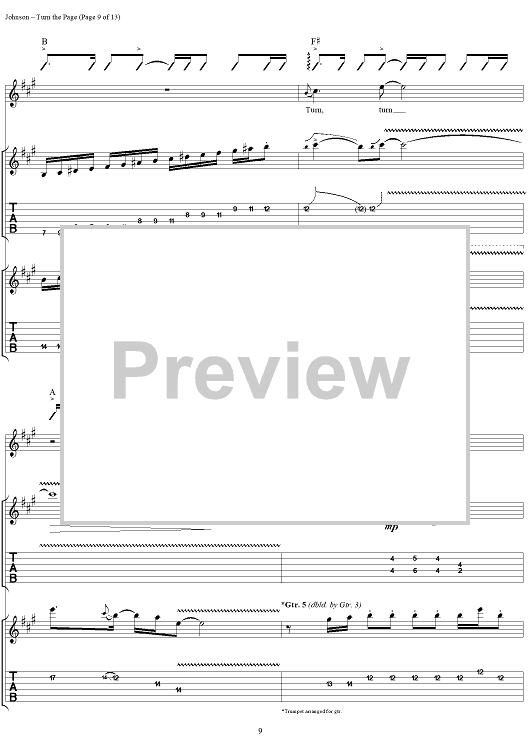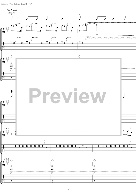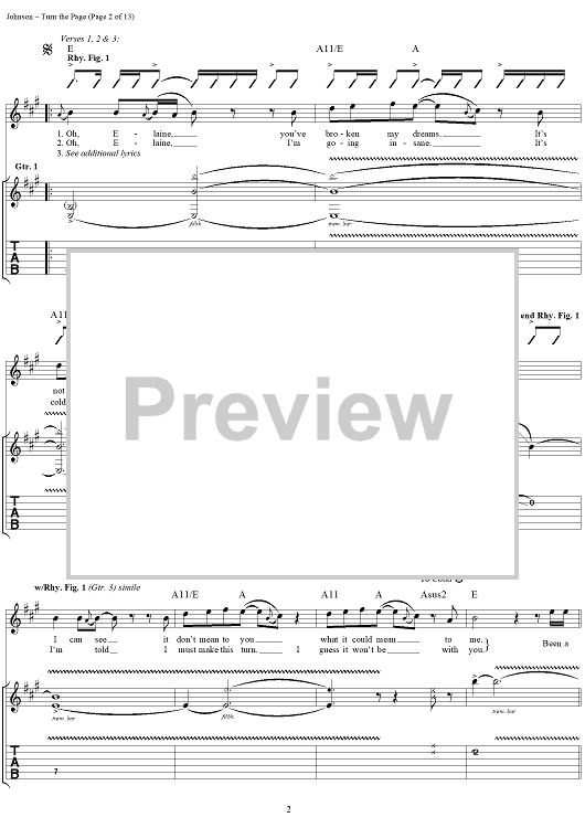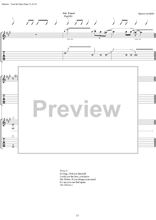 Digital Sheet Music for Turn the Page by Eric Johnson scored for Guitar Tab/Vocal; id:124366