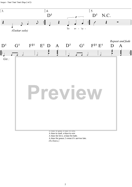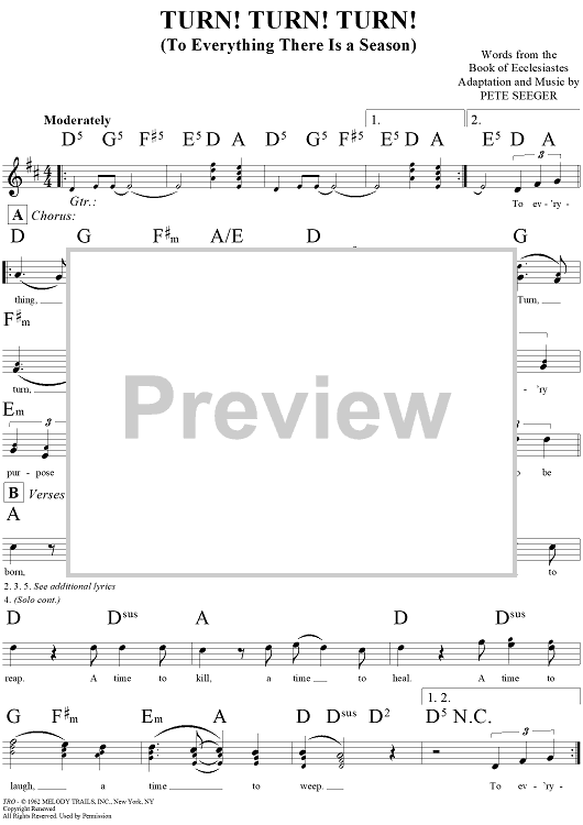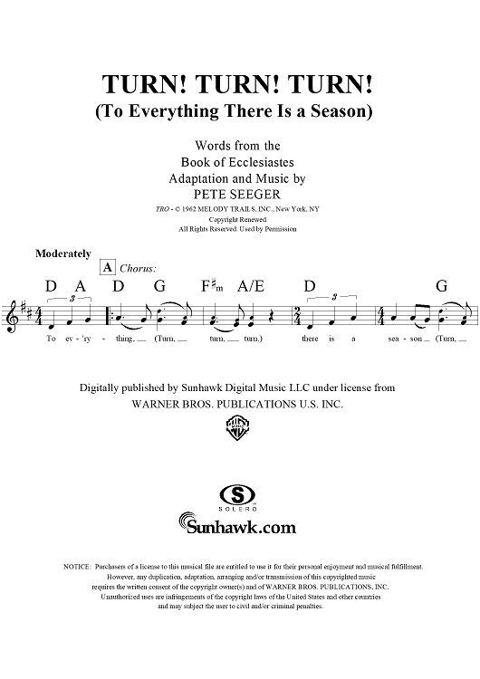 Digital Sheet Music for Turn! Turn! Turn! (To Everything There Is a Season) by The Byrds, Peter Seeger scored for Lead Sheet; id:293798