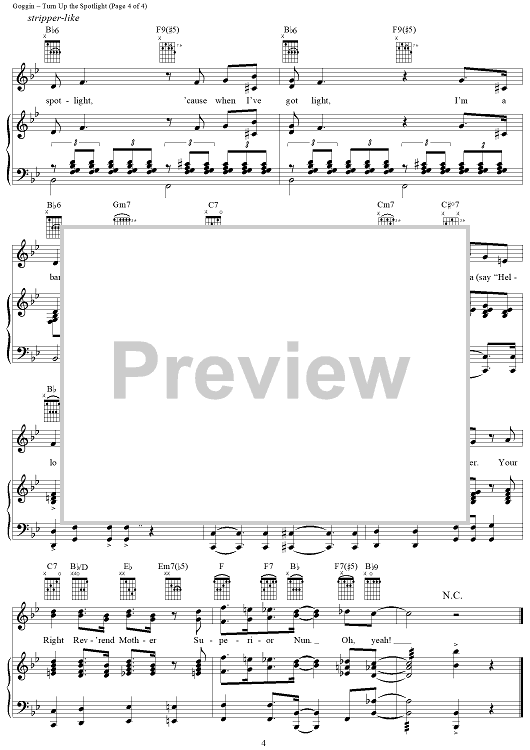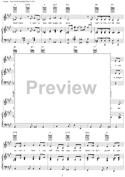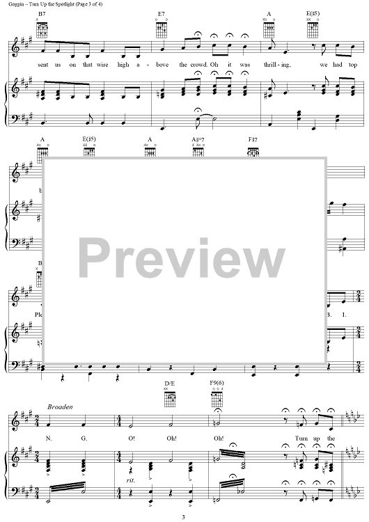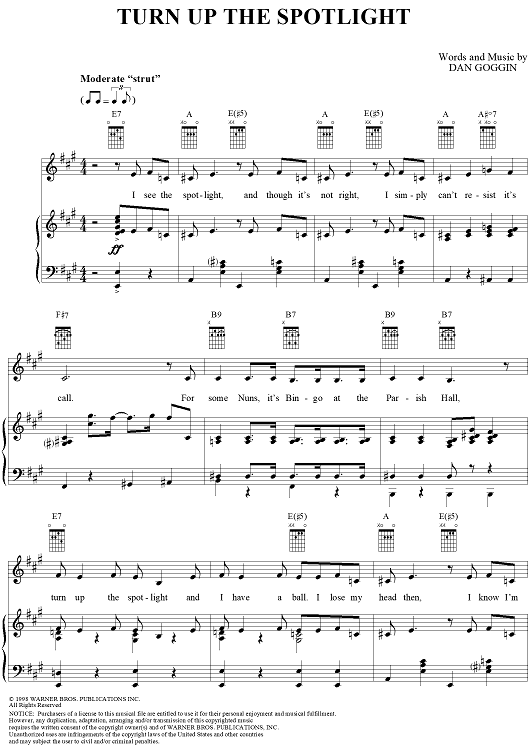 Digital Sheet Music for Turn Up the Spotlight by Dan Goggin scored for Piano/Vocal/Chords; id:191595