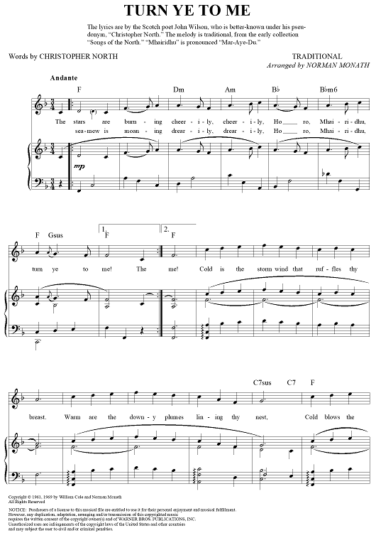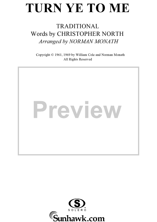 Digital Sheet Music for Turn Ye To Me by Norman Monath, Christopher North, Traditional scored for Piano/Vocal/Chords; id:120523