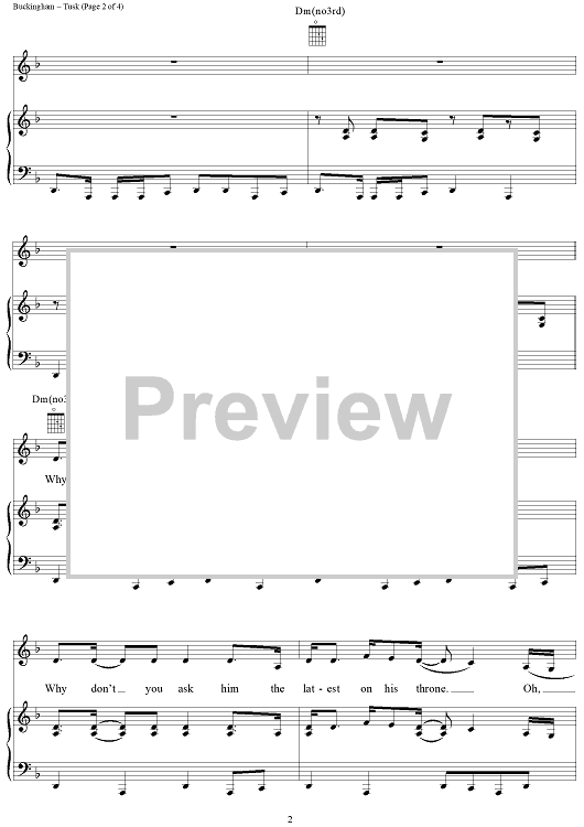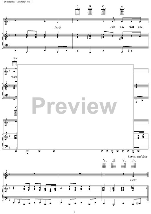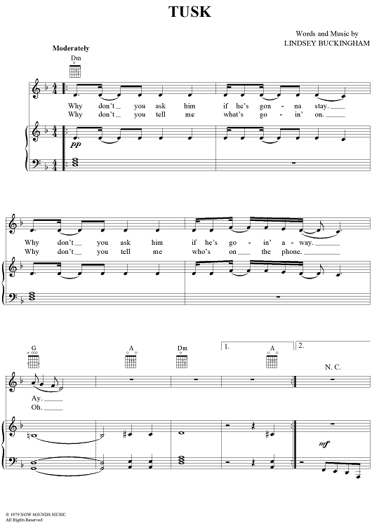 Digital Sheet Music for Tusk by Lindsey Buckingham, Fleetwood Mac scored for Piano/Vocal/Chords; id:111805