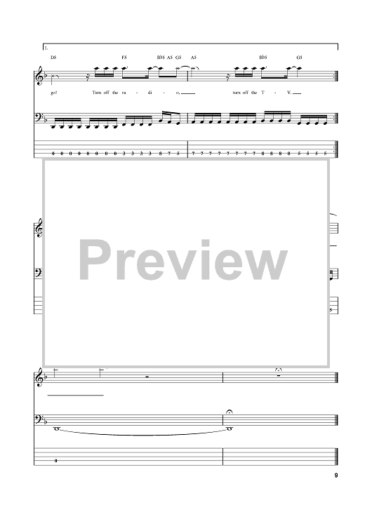 Digital Sheet Music for TV Radio by Matthew McDonough, Gurrg, Ry-Know, Chad Gray, Mudvayne scored for Bass Tab; id:387587