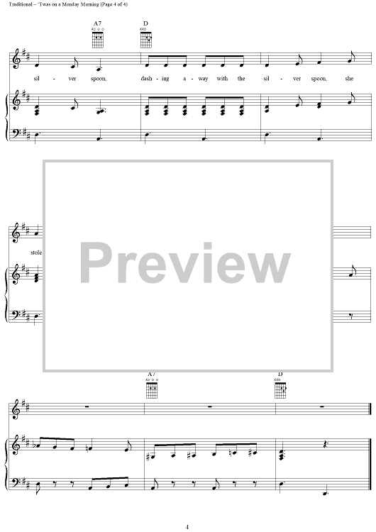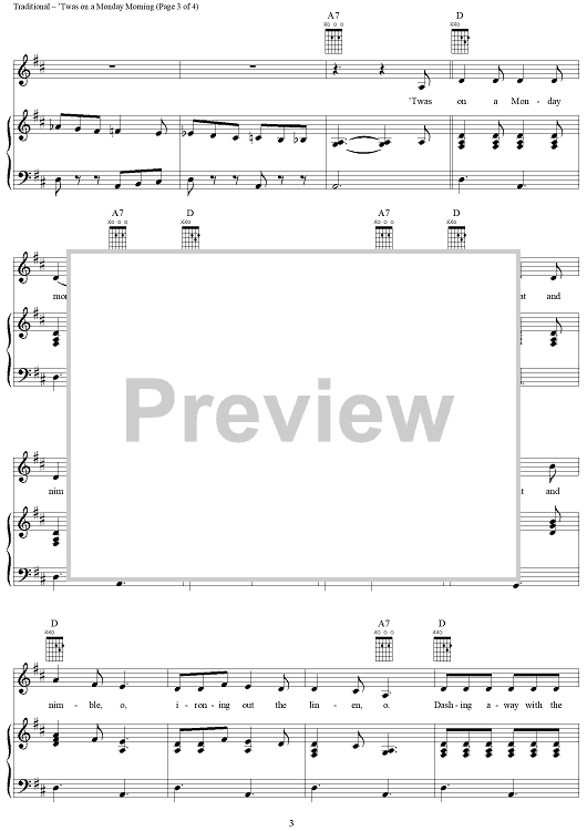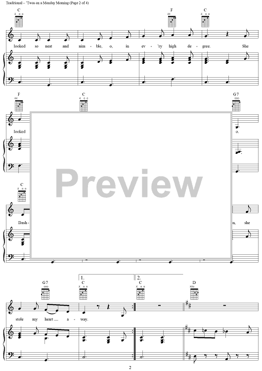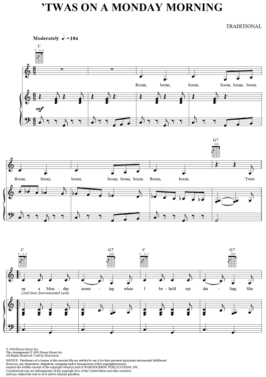 Digital Sheet Music for 'Twas on a Monday Morning by Traditional scored for Piano/Vocal/Chords; id:289195