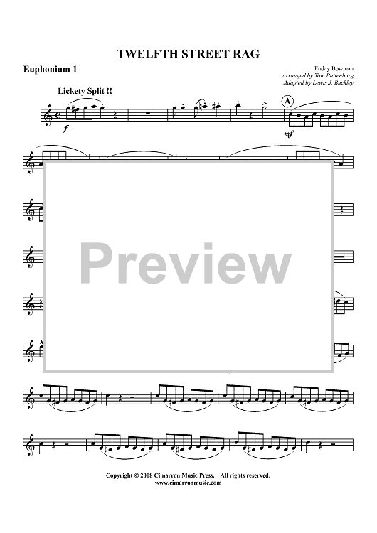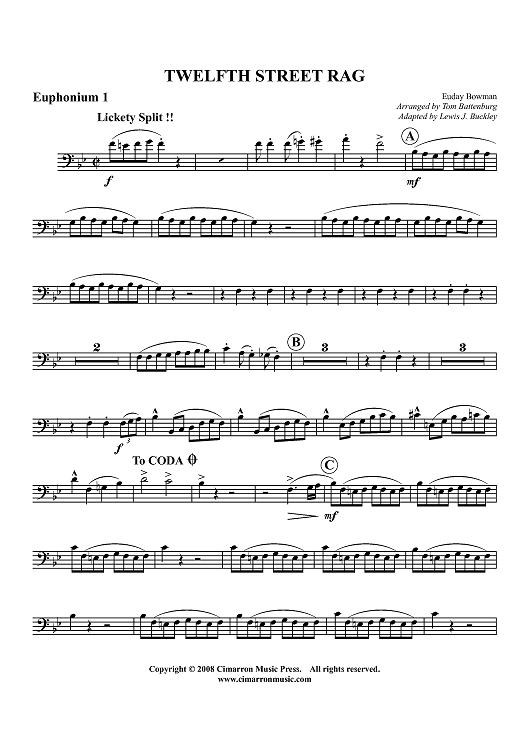 "Twelfth Street Rag - Euphonium 1 BC/TC" Sheet Music by Euday L. Bowman