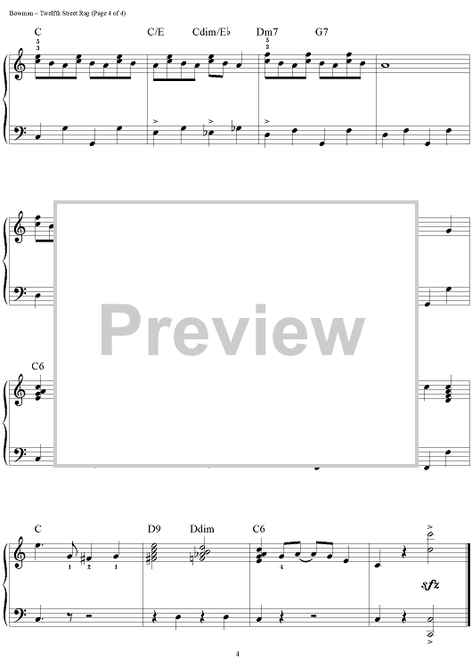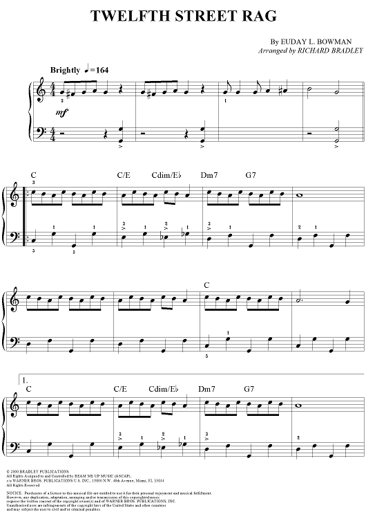 Digital Sheet Music for Twelfth Street Rag by Richard Bradley, Euday L. Bowman scored for Easy Piano; id:292443