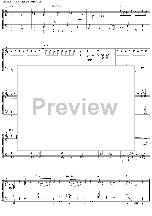 Digital Sheet Music for Twelfth Street Rag by Euday L. Bowman scored for Easy Piano/Chords; id:433108