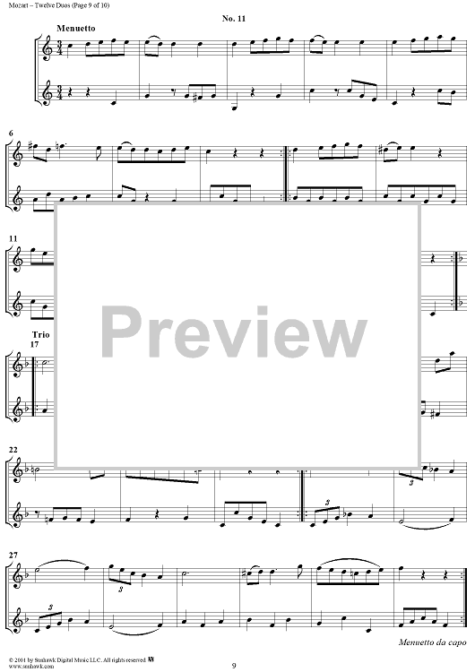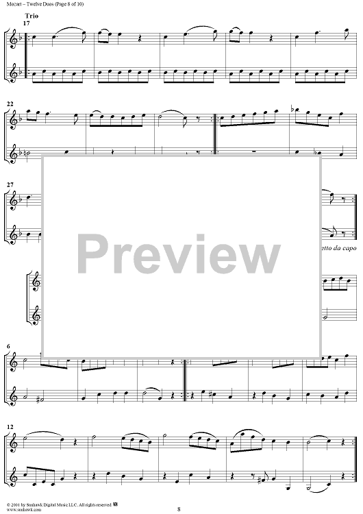 "Twelve Duette, K496a (K487)" Sheet Music by Wolfgang Amadeus Mozart