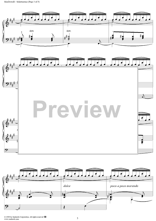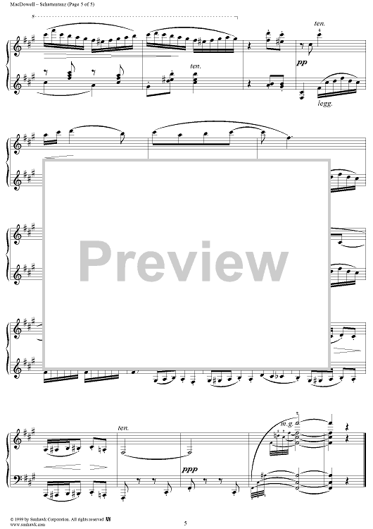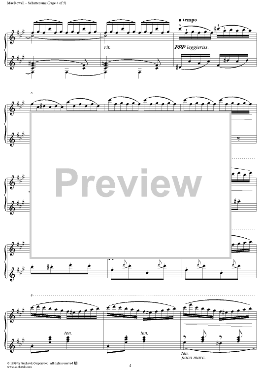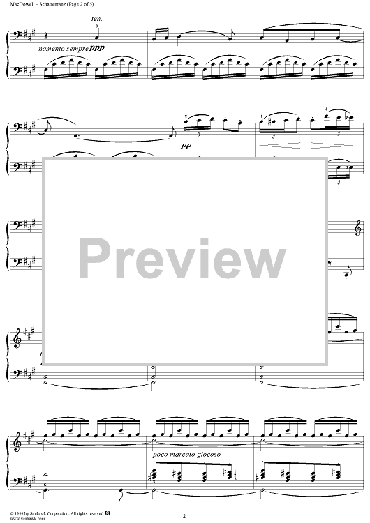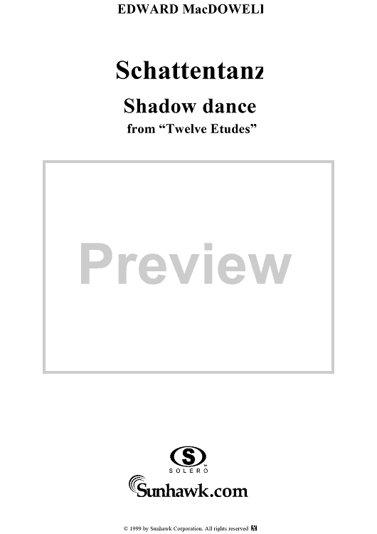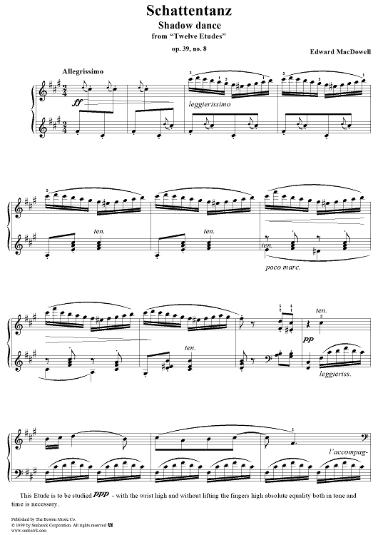 Digital Sheet Music for Twelve Etudes, Op. 39, No. 8 Schattentanz by Edward MacDowell scored for Piano Solo; id:264084