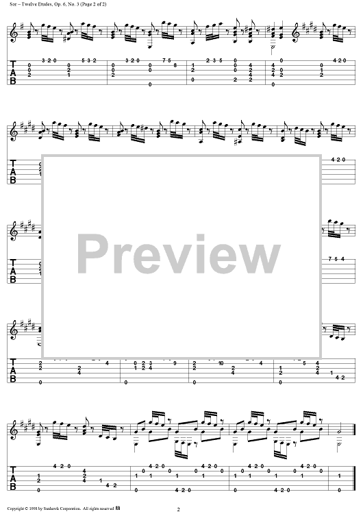 "Twelve Etudes, Op. 6, No. 3" Sheet Music by Fernando Sor