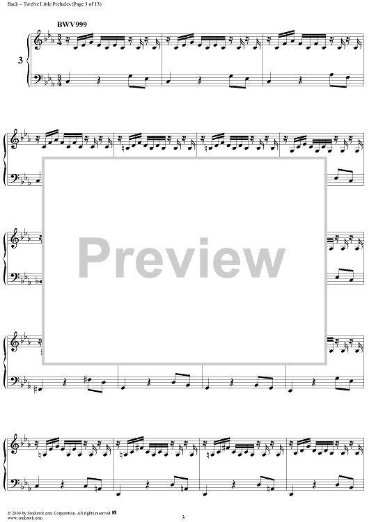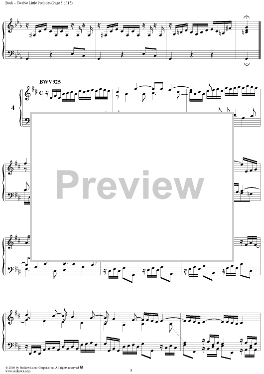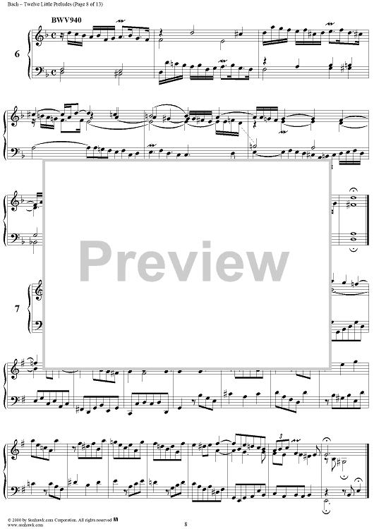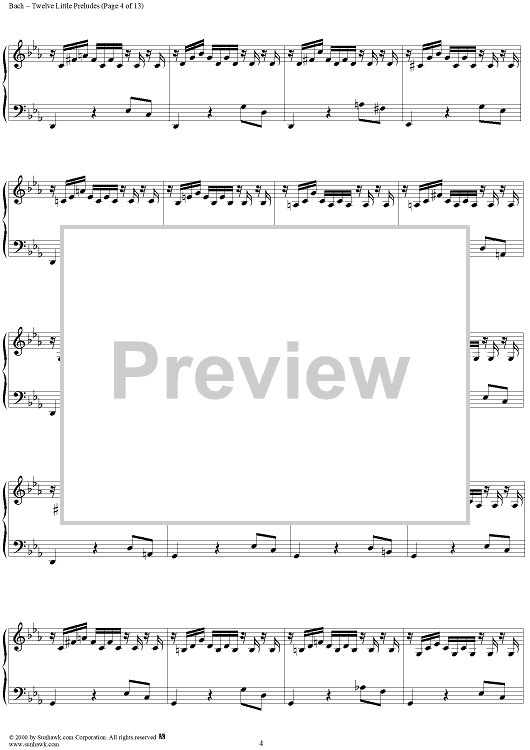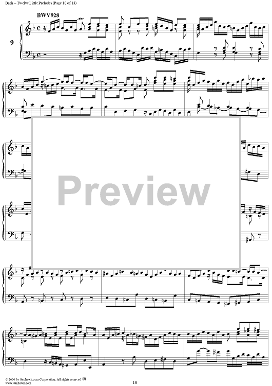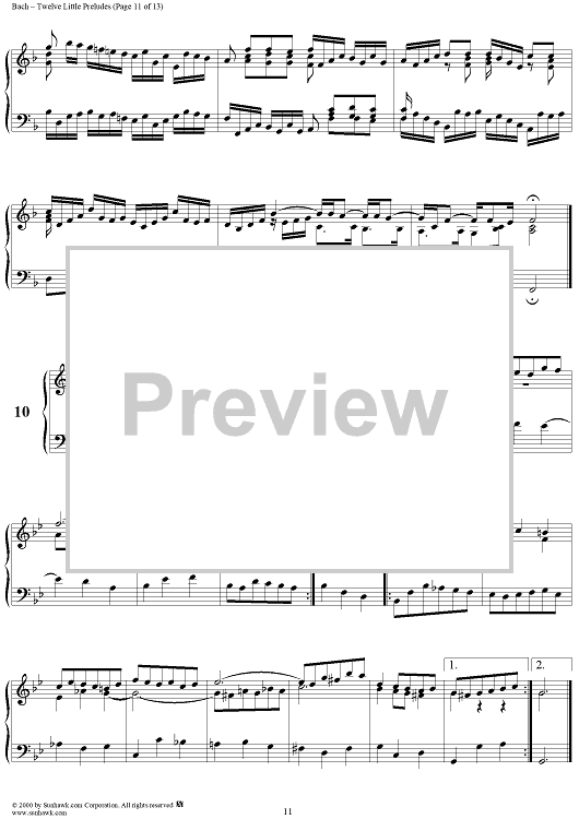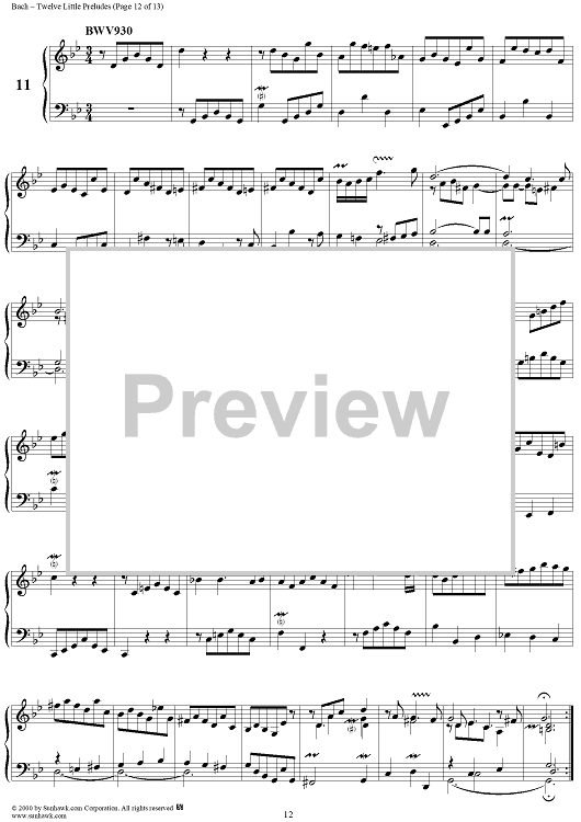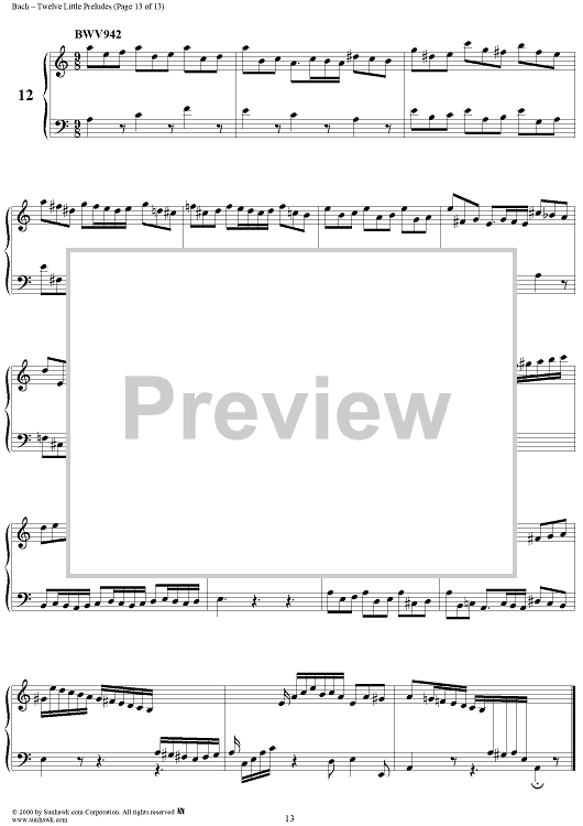 Digital Sheet Music for Twelve Little Preludes by Johann Sebastian Bach scored for Piano Solo; id:235408