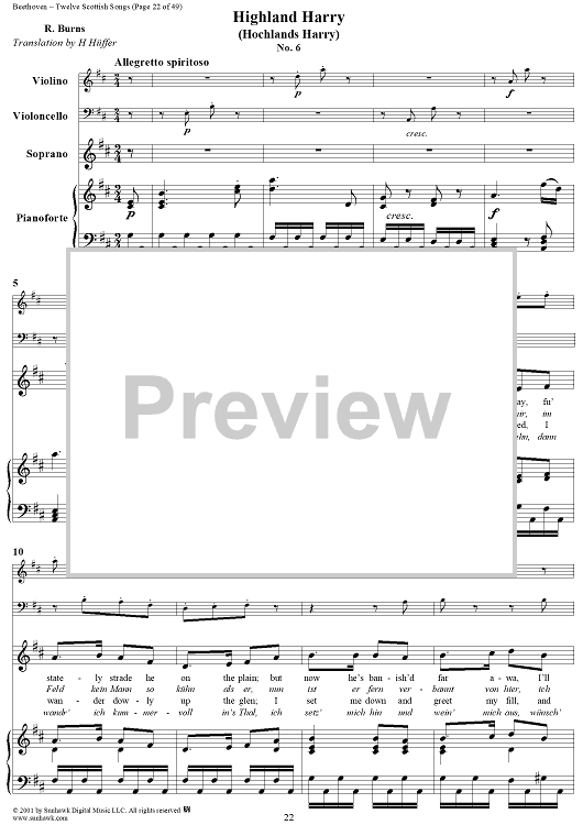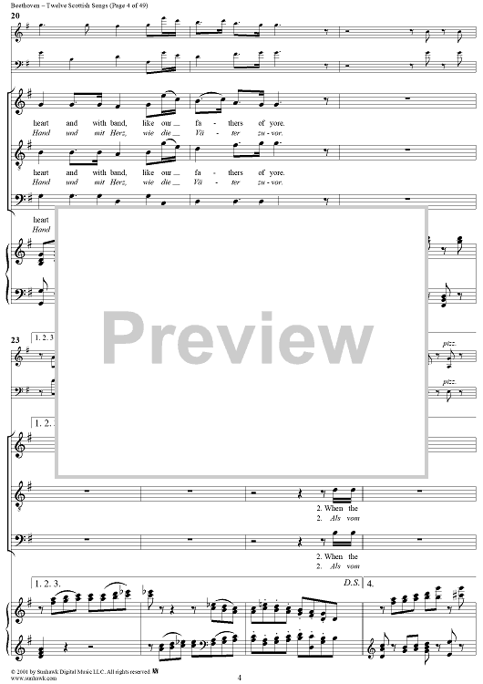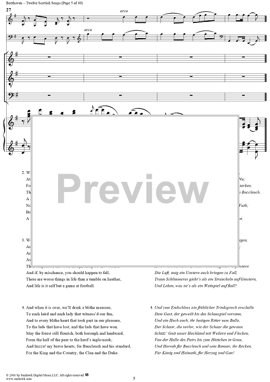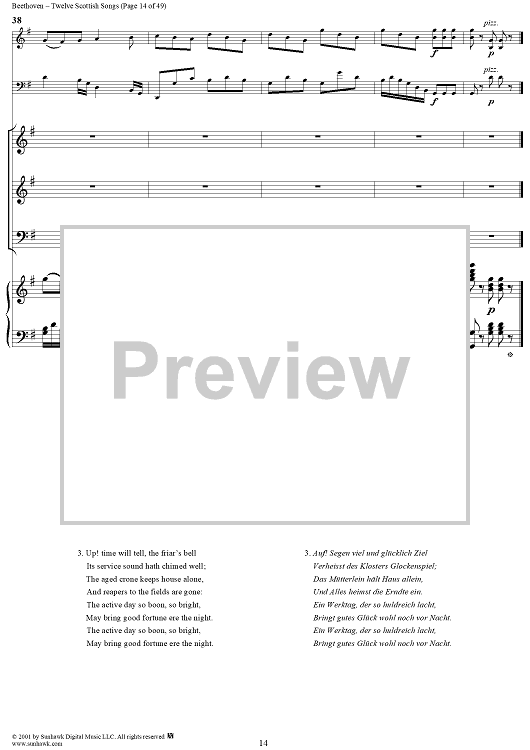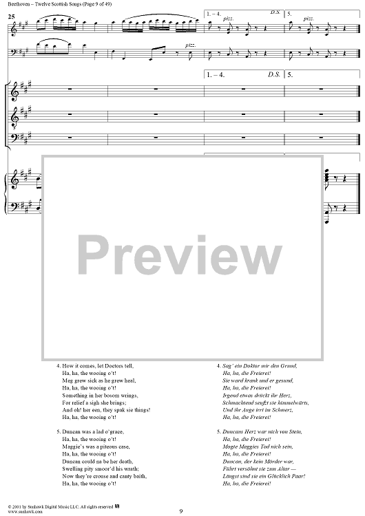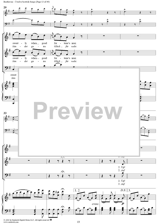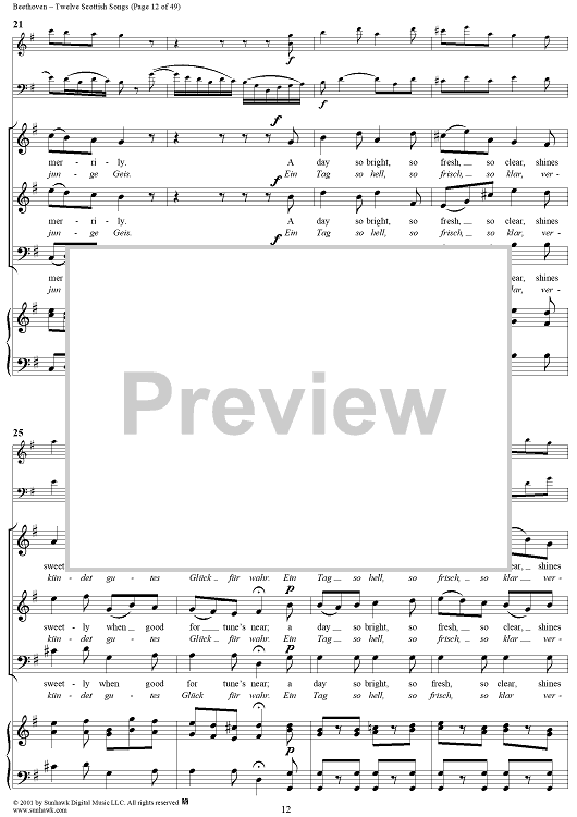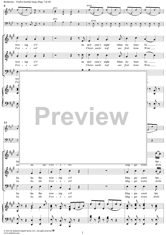 Digital Sheet Music for Twelve Schottische Lieder by Ludwig van Beethoven scored for STB Choir/Violin/Cello/Piano; id:253288