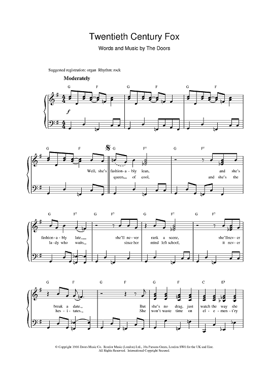 Digital Sheet Music for Twentieth Century Fox by The Doors scored for Piano/Vocal/Chords; id:376859