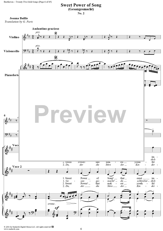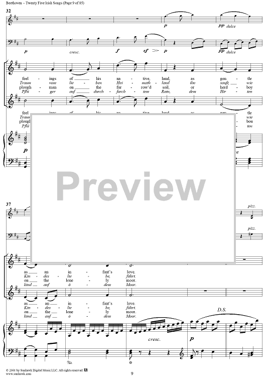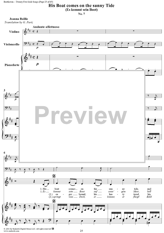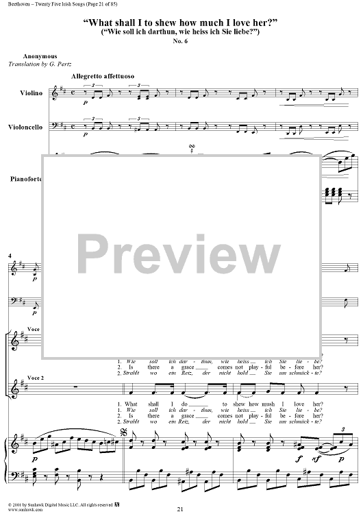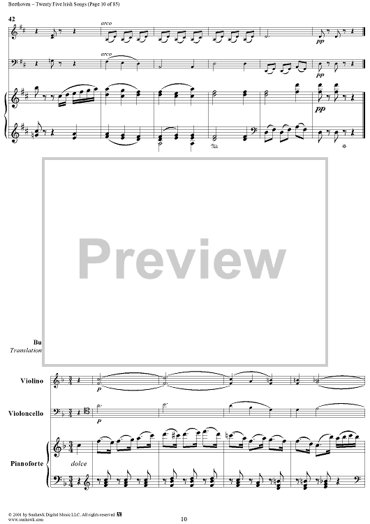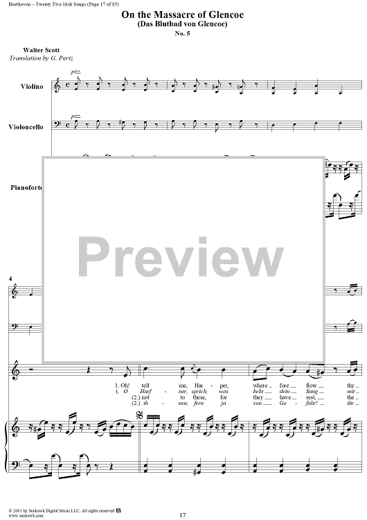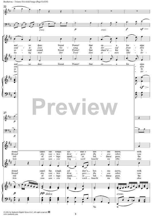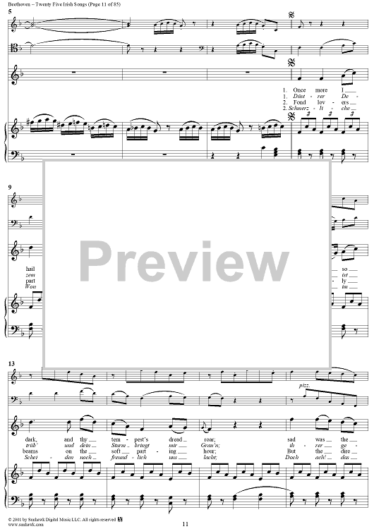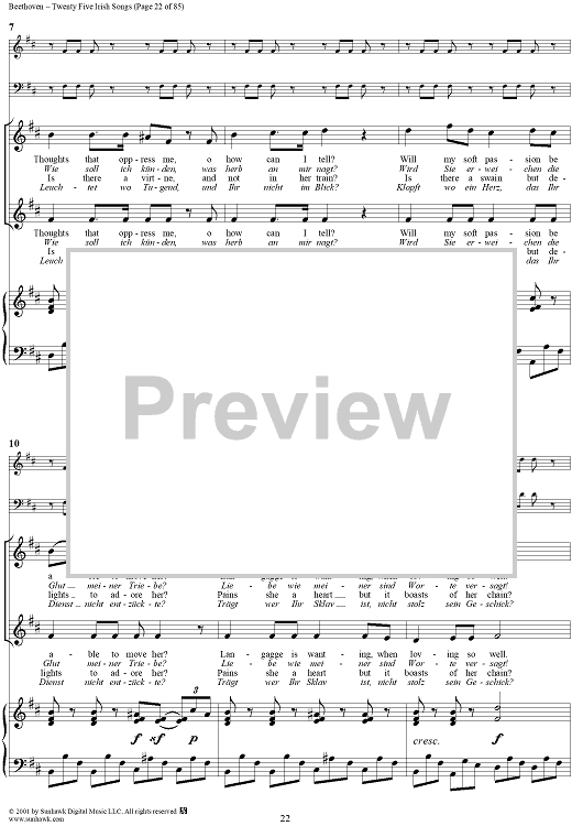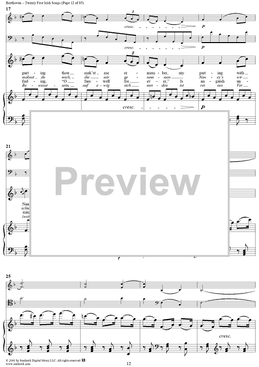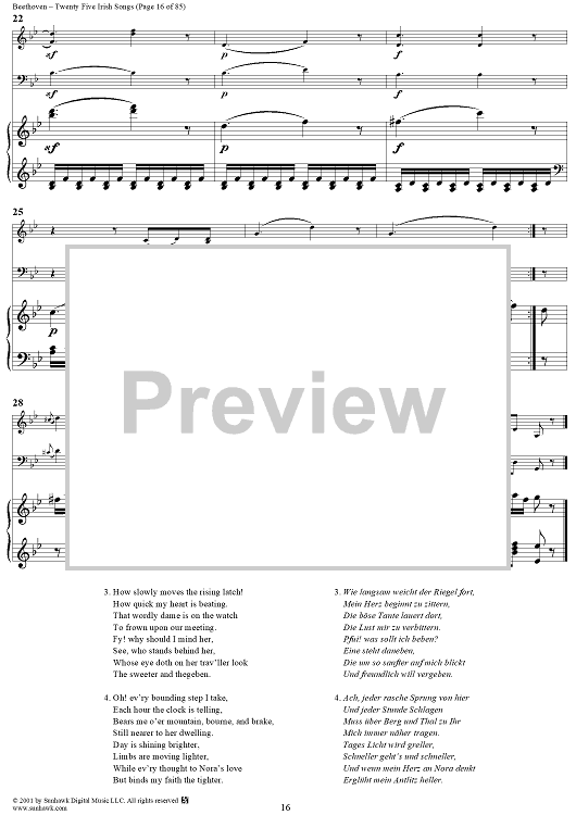 Digital Sheet Music for Twenty five Irische Lieder by Ludwig van Beethoven scored for STB Choir/Violin/Cello/Piano; id:262996