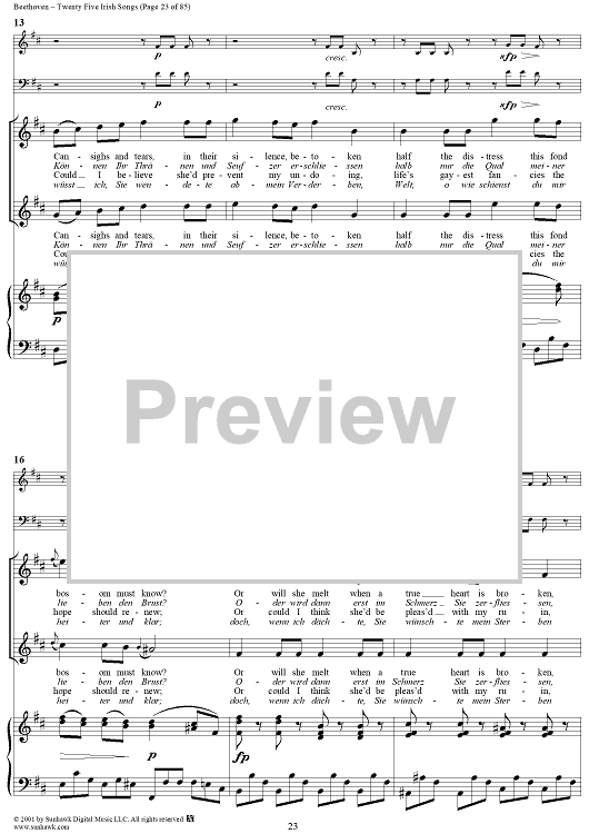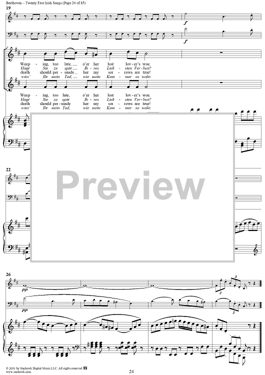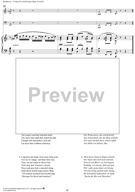 "Twenty five Irische Lieder" Sheet Music by Ludwig van Beethoven