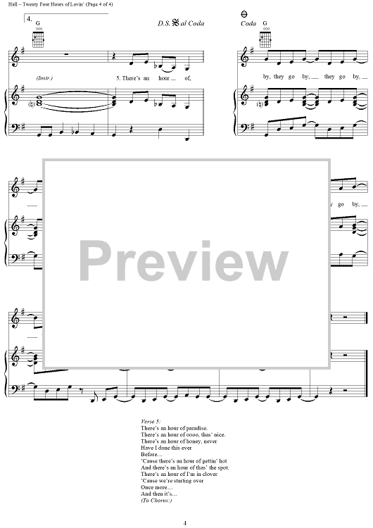 Digital Sheet Music for Twenty Four Hours of Lovin' by Carol Hall, Ann-Margret scored for Piano/Vocal/Chords; id:286791