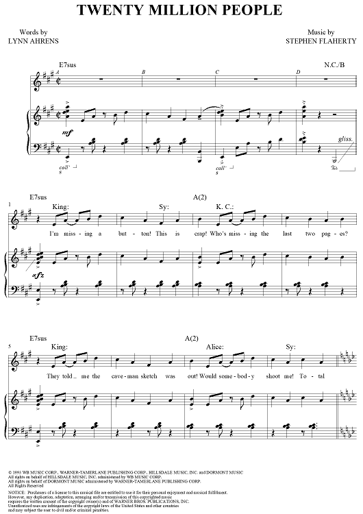 Digital Sheet Music for Twenty Million People by Stephen Flaherty, Lynn Ahrens scored for Piano/Vocal/Chords; id:315962