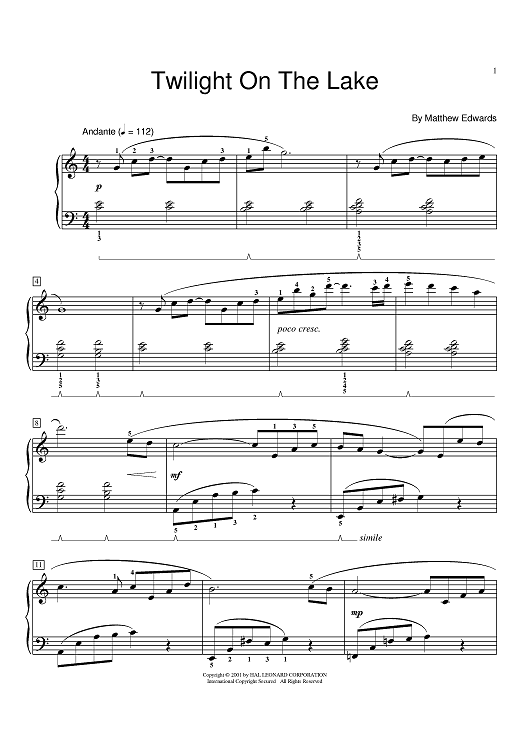 Digital Sheet Music for Twilight On The Lake by Matthew Edwards scored for Piano; id:373483