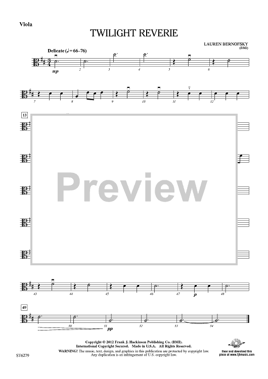 Digital Sheet Music for Twilight Reverie - Viola by Lauren Bernofsky scored for String Orchestra; id:432047
