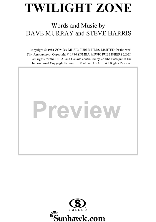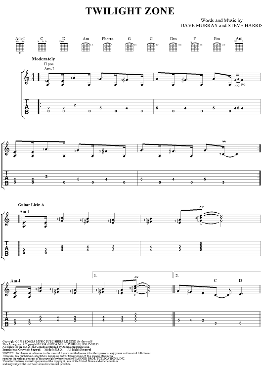 Digital Sheet Music for Twilight Zone by Steve Harris, Iron Maiden, Dave Murray scored for Guitar Tab/Vocal; id:113014