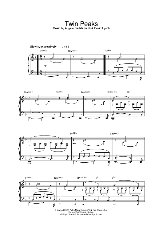 Digital Sheet Music for Twin Peaks (Theme) by Angelo Badalamenti, David Lynch scored for Piano; id:384491