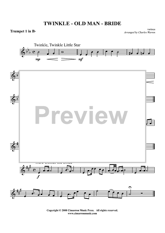 Digital Sheet Music for Twinkle - Old Man - Bride (Medley) - Trumpet 1 in Bb by Various, Charles Warren scored for Brass Quintet; id:424397