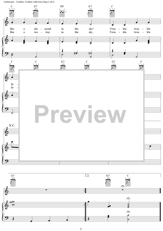 Digital Sheet Music for Twinkle, Twinkle Little Star by Traditional scored for Piano/Vocal/Chords; id:289209
