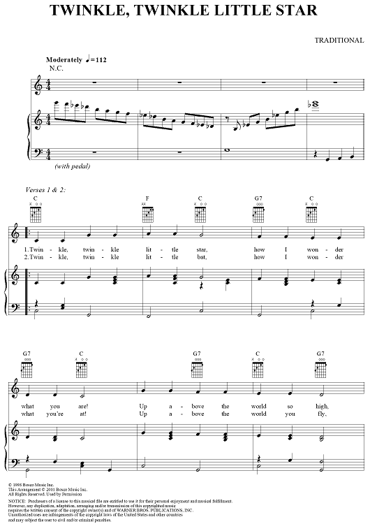 "Twinkle, Twinkle Little Star" Sheet Music by Traditional