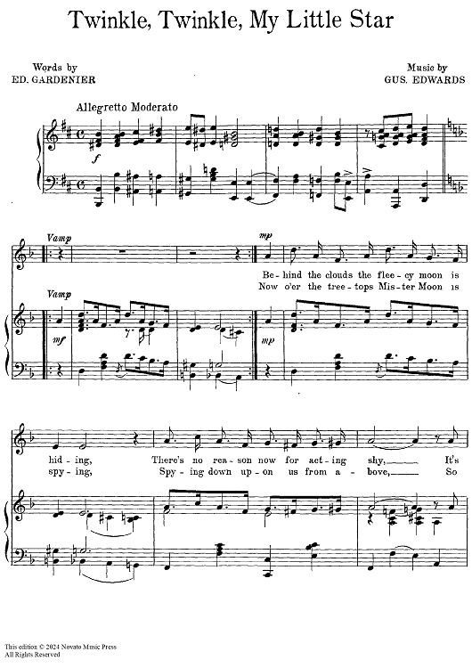 Digital Sheet Music for Twinkle, Twinkle, My Little Star by Gus Edwards, Ed. Gardenier scored for Piano/Vocal; id:423237