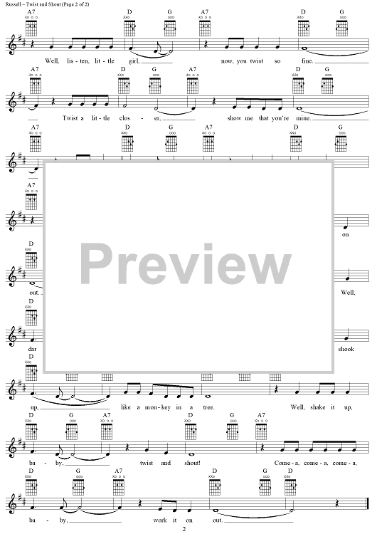 Digital Sheet Music for Twist and Shout by The Beatles, Phil Medley, Bert Russell scored for Easy Guitar/Vocal; id:292696