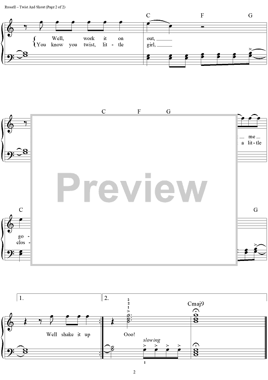 Digital Sheet Music for Twist and Shout by The Beatles, Phil Medley, Bert Russell scored for Easy Piano/Vocal/Chords; id:452000