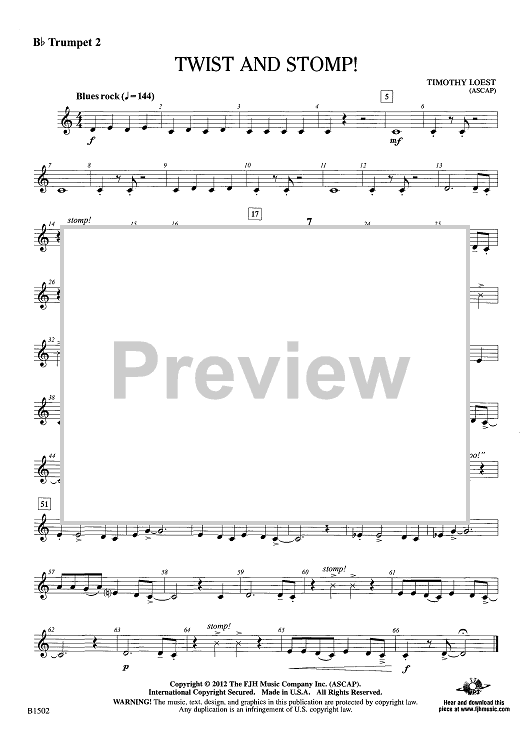 "Twist and Stomp! - Bb Trumpet 2" Sheet Music by Timothy Loest