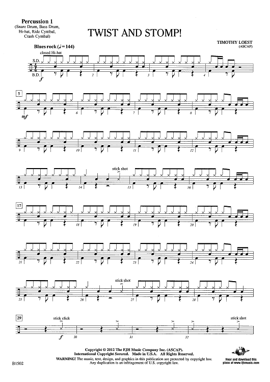 "Twist and Stomp! - Percussion 1" Sheet Music by Timothy Loest