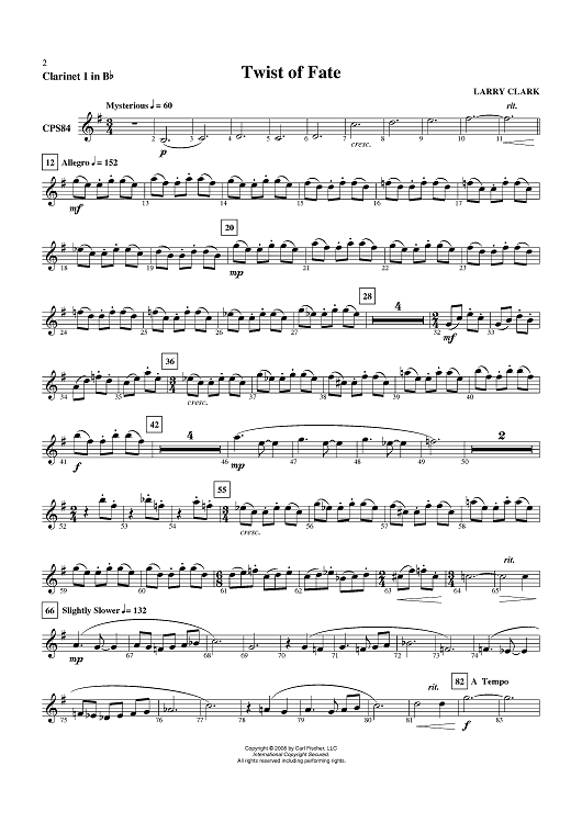 Digital Sheet Music for Twist of Fate - Clarinet 1 in B-flat by Larry Clark scored for Concert Band; id:409047