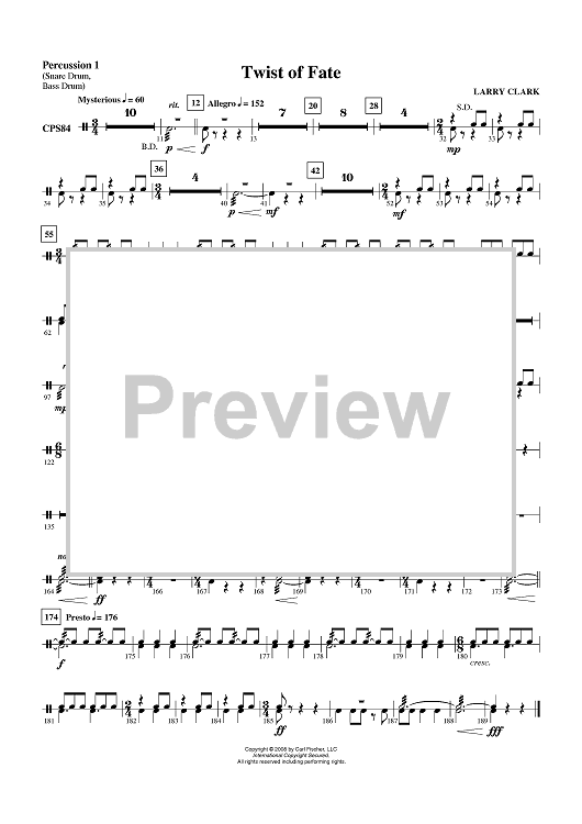 "Twist of Fate - Percussion 1" Sheet Music by Larry Clark