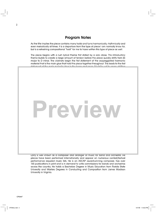 Digital Sheet Music for Twist of Fate - Score by Larry Clark scored for Concert Band; id:409043
