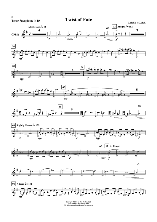 "Twist of Fate - Tenor Sax" Sheet Music by Larry Clark