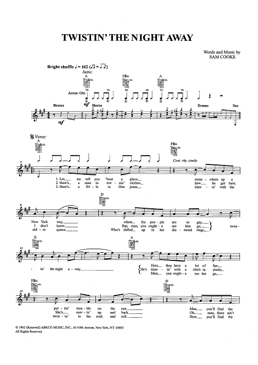 "Twistin' The Night Away" Sheet Music by Sam Cooke