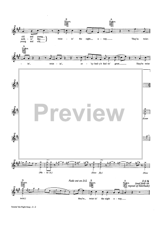 Digital Sheet Music for Twistin' The Night Away by Sam Cooke scored for Easy Guitar Tab/Vocal/Chords; id:458979