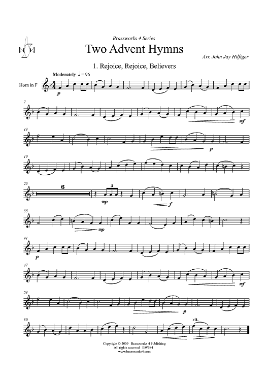 Digital Sheet Music for Two Advent Hymns - Horn in F by Various, John Jay Hilfiger scored for Brass Quintet; id:411391