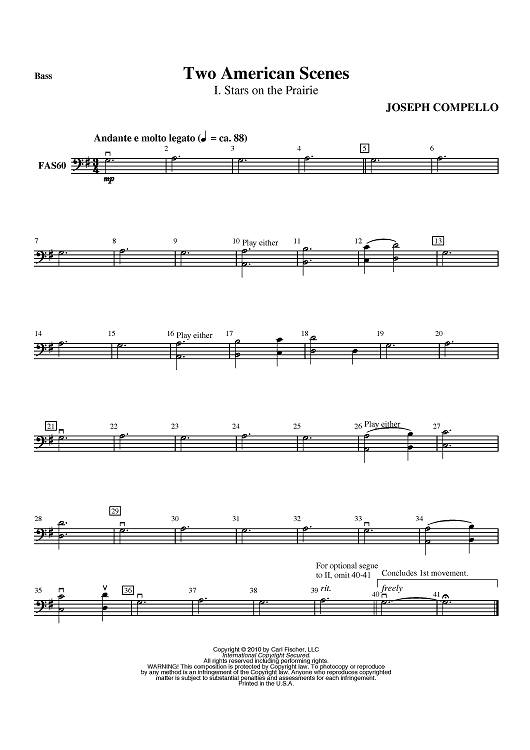 "Two American Scenes - Bass" Sheet Music by Joseph Compello
