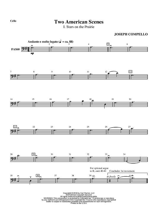 "Two American Scenes - Cello" Sheet Music by Joseph Compello